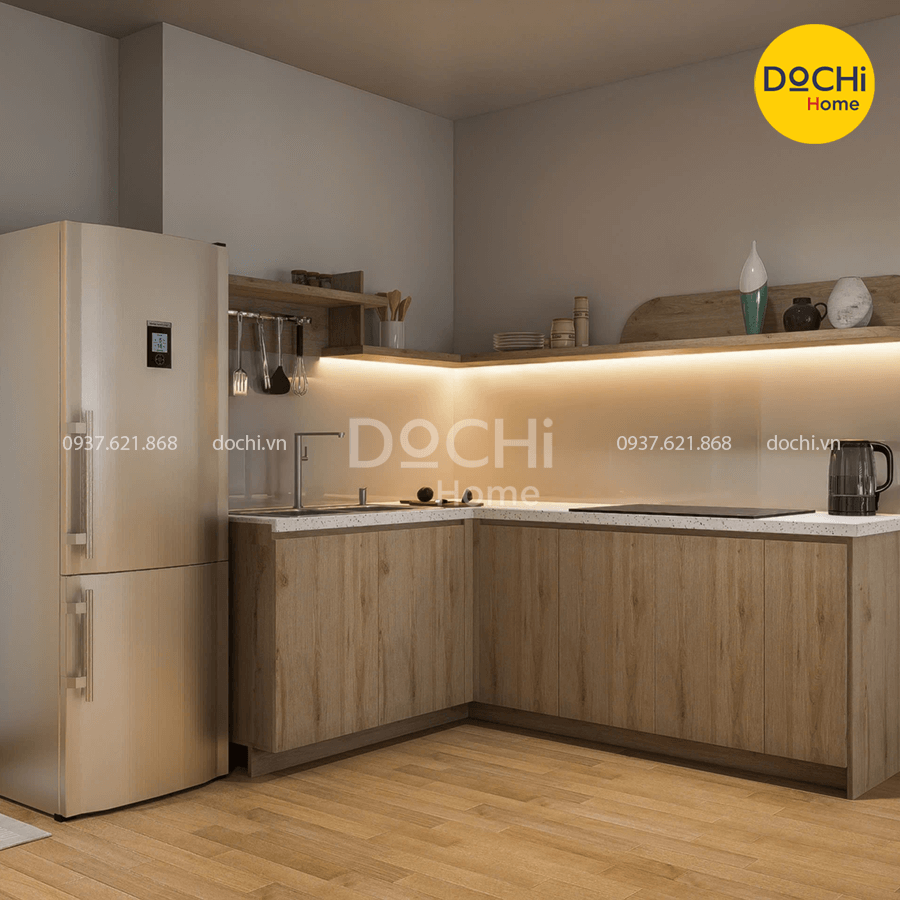 - Phòng bếp: Cần tiện lợi, dễ vệ sinh, thường thiết kế chữ L hoặc U để tận dụng diện tích. Mặt bếp bằng đá, tủ bếp gỗ công nghiệp chống ẩm là lựa chọn phổ biến.